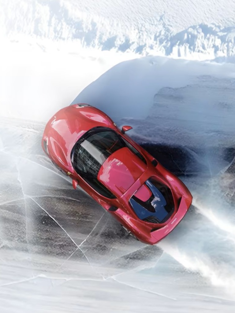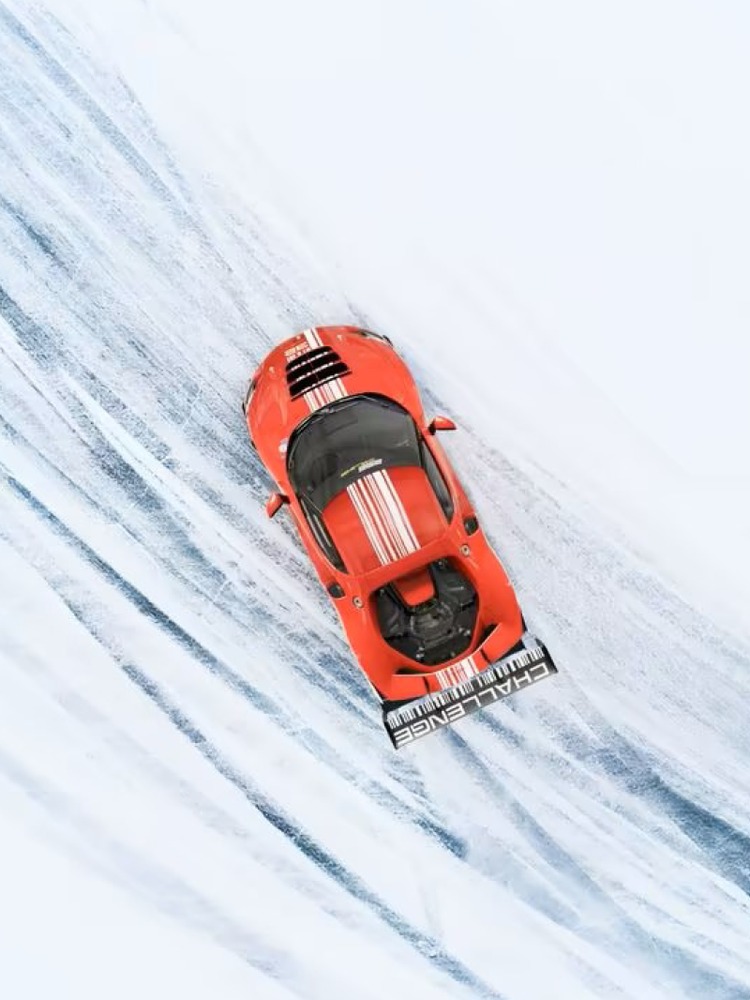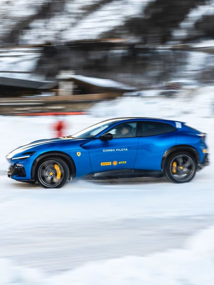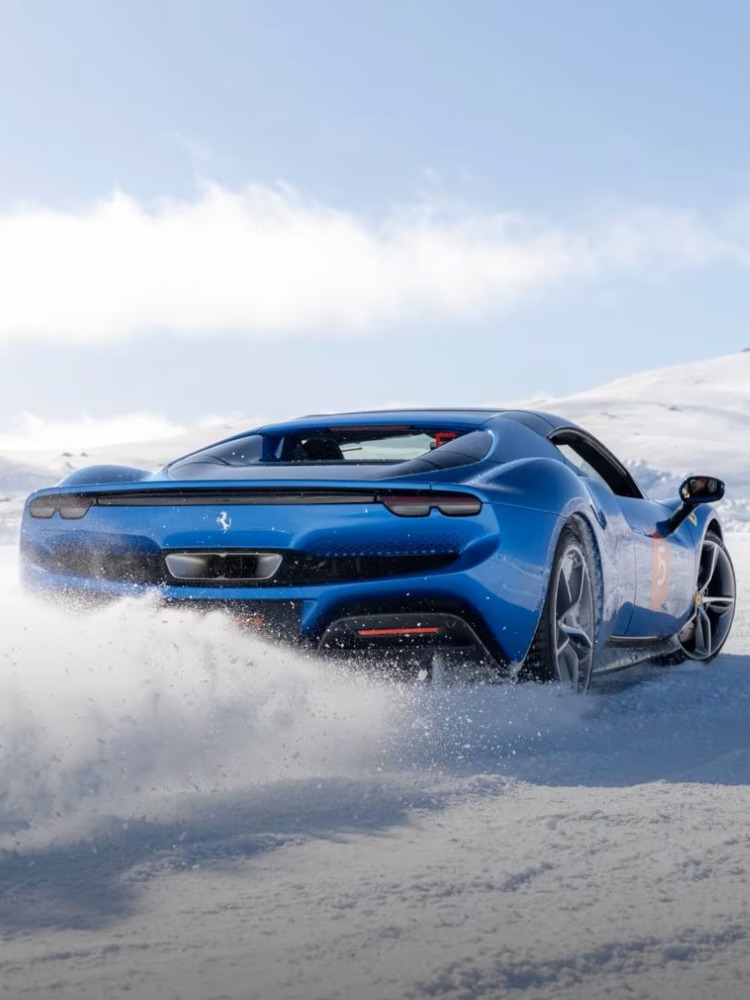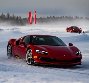 Beim Ferrari Corso Pilota On-Ice werden die Kursfahrzeuge, der Ferrari 296 GTB, der Ferrari Purosangue sowie der Ferrari 296 Challenge, natürlich mit Spikes ausgerüstet. Dieser Modell-Mix ist sehr gut geeignet, da die Fahrzeuge grundlegend andere Charakteristika haben. Sie unterscheiden sich in Antriebsart, Gewicht und Drehzahlbandbreiten deutlich. Ein Allrad bewegt sich komplett anders als ein Heckantriebler. Der Ferrari 296 GTB ist ein reinrassiger Sportwagen mit Heckantrieb, der Ferrari Purosangue hingegen ein Allrad, der zudem 600 Kilogramm mehr Gewicht auf die Waage bringt. Bei dem Ferrari 296 GTB muss der Pilot lernen, deutlich stärker mit den Bremsen zu arbeiten. Der Wagen ist sehr agil, wodurch sich kleine Kurven auf dem Eistrack angenehmer fahren lassen und eine höhere Geschwindigkeit ermöglichen. Die Fahrer werden beim Purosangue hingegen feststellen, dass sich dieser in langen Kurven deutlich stabiler verhält und dadurch hier im Vergleich höhere Geschwindigkeiten ermöglicht.
