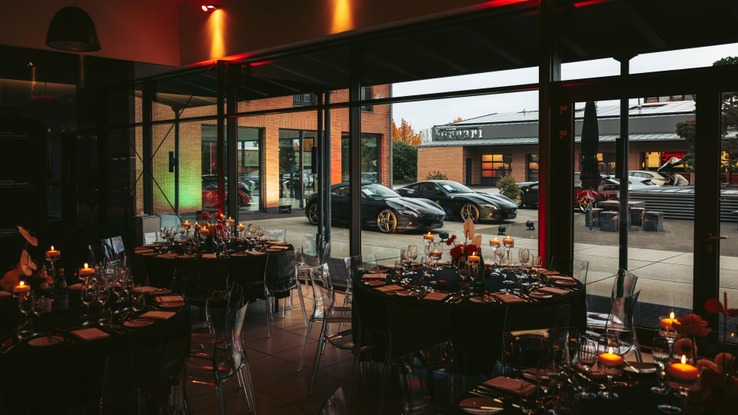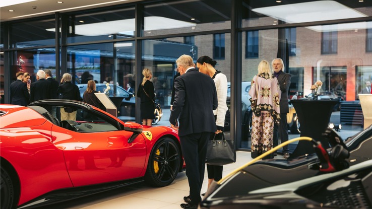 Der Showroom erleuchtete im feierlichen Flair. Die festlich gedeckten Tische luden zum Verweilen ein und die Ferrari Modelle aller Couleur zogen die Gäste in ihren Bann. Vom Ferrari Roma über die Modellfamilie Ferrari 296 bis hin zum Ferrari SF90 oder Purosangue: Für jeden Geschmack wurde das passende Modell aus dem Ferrari Approved Programm in einer wunderschön inszenierten Sonderschau präsentiert.